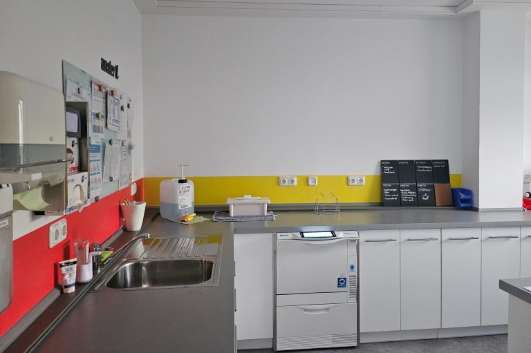 Selbst im Hintergrund werden unsere Instrumente gemäß den höchsten Standards aufbereitet, um die Hygiene in der Zahnarztpraxis zu gewährleisten. Wir legen großen Wert auf gründliche Desinfektion und Sterilisation, um die Sicherheit unserer Patienten zu garantieren.